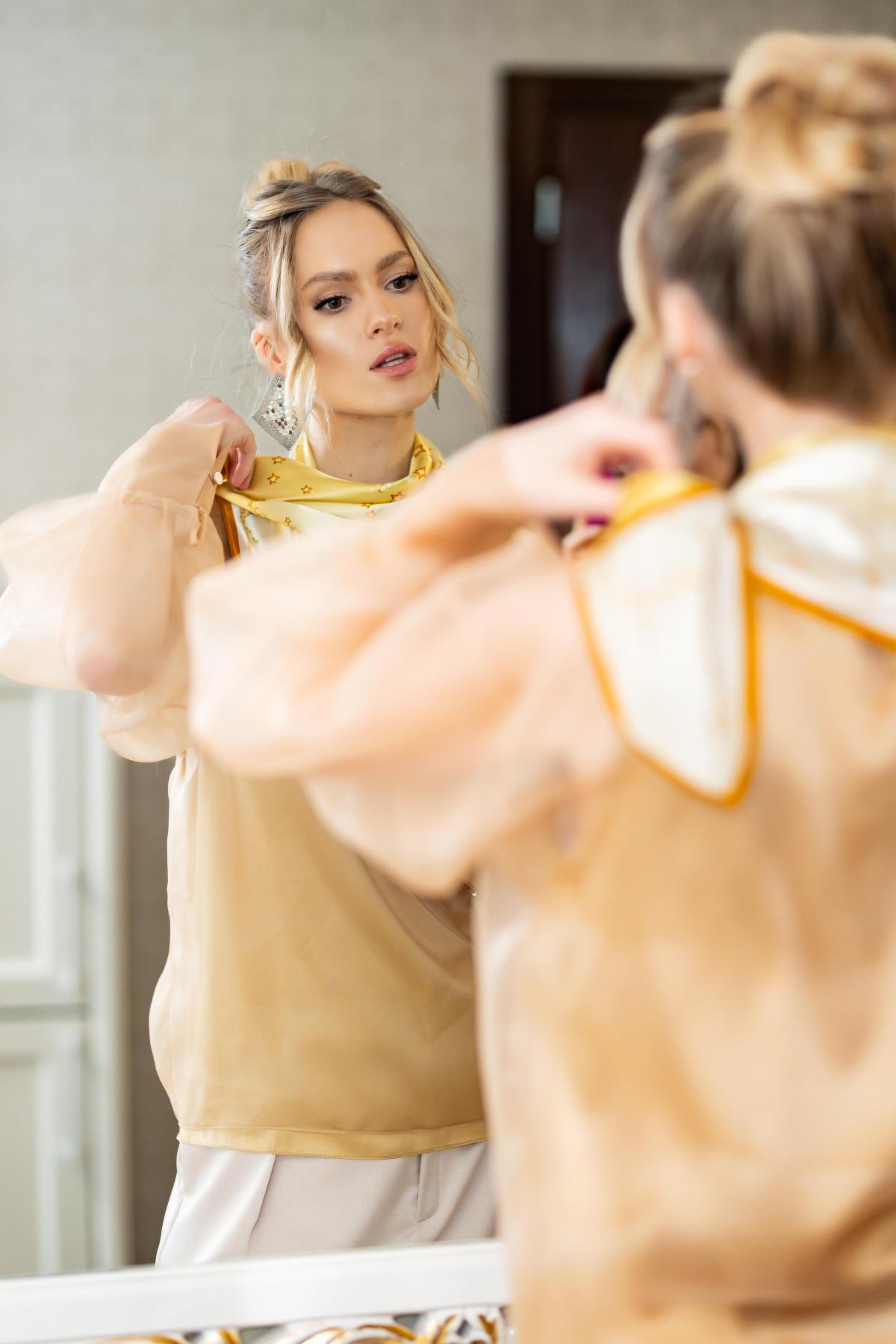 My Lucky Star este un talisman pe matase, construit in jurul stralucirii magnetice stelor aurii. In centrul sau, cuvintele Lucky Girl transforma compozitia intr-un simbol personal – un talisman pe care il poti purta. Stelele simbolizeaza linistita si increderea cuiva care stie ca norocul se revendica, nu se asteapta. Lucrarea a fost realizata manual in acrilic pe panza, apoi rafinata digital si imprimata pe matase, pastrand fiecare detaliu luminos.