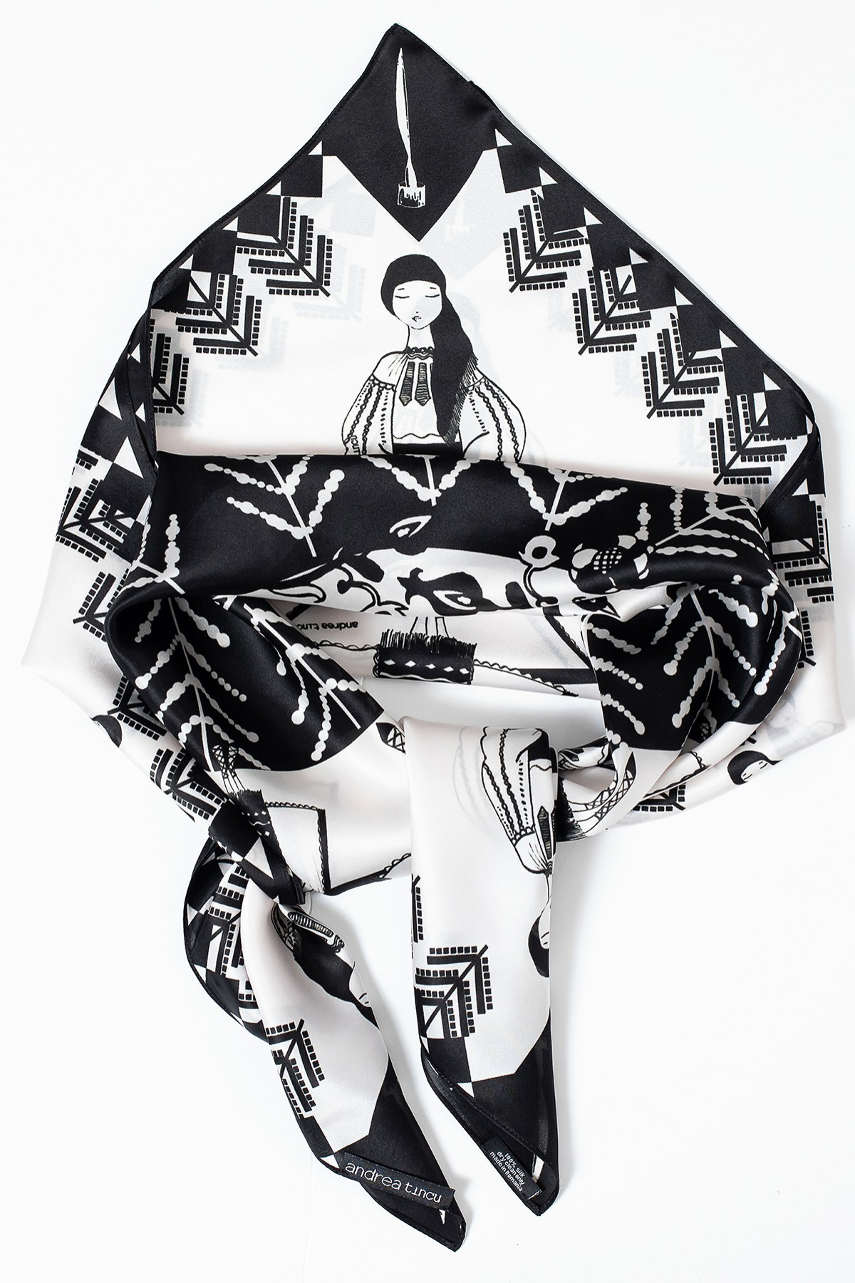 Ciuleandra is a limited edition scarf which was created for the people who appreciate the Romanian culture. One can wear it with minimalist garments because of the black and white contrast and graphic ornamentation.