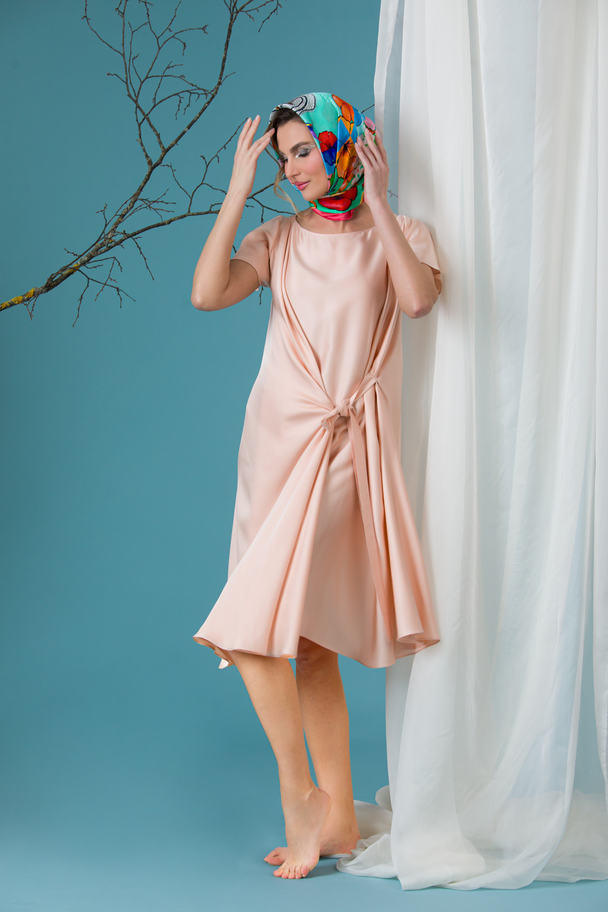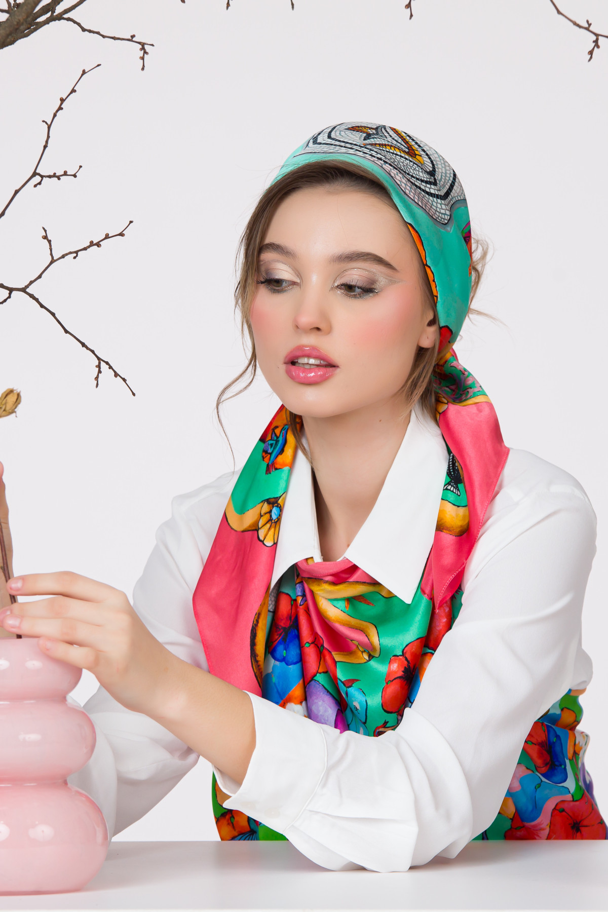 The Galatea collection is inspired by the lyrical representation of the Nereid Galatea, from Nichita Stanescu's poem "Catre Galateea". Natural elements are combined with a bohemian, feminine spirit in a harmony of rebirth and creation. In the universe imagined in the collection, silk scarves are the works of art that create the reality and give its meaning. In the vision of designer Andreea Tincu, beauty is not just an element of reality, but represents its very essence.