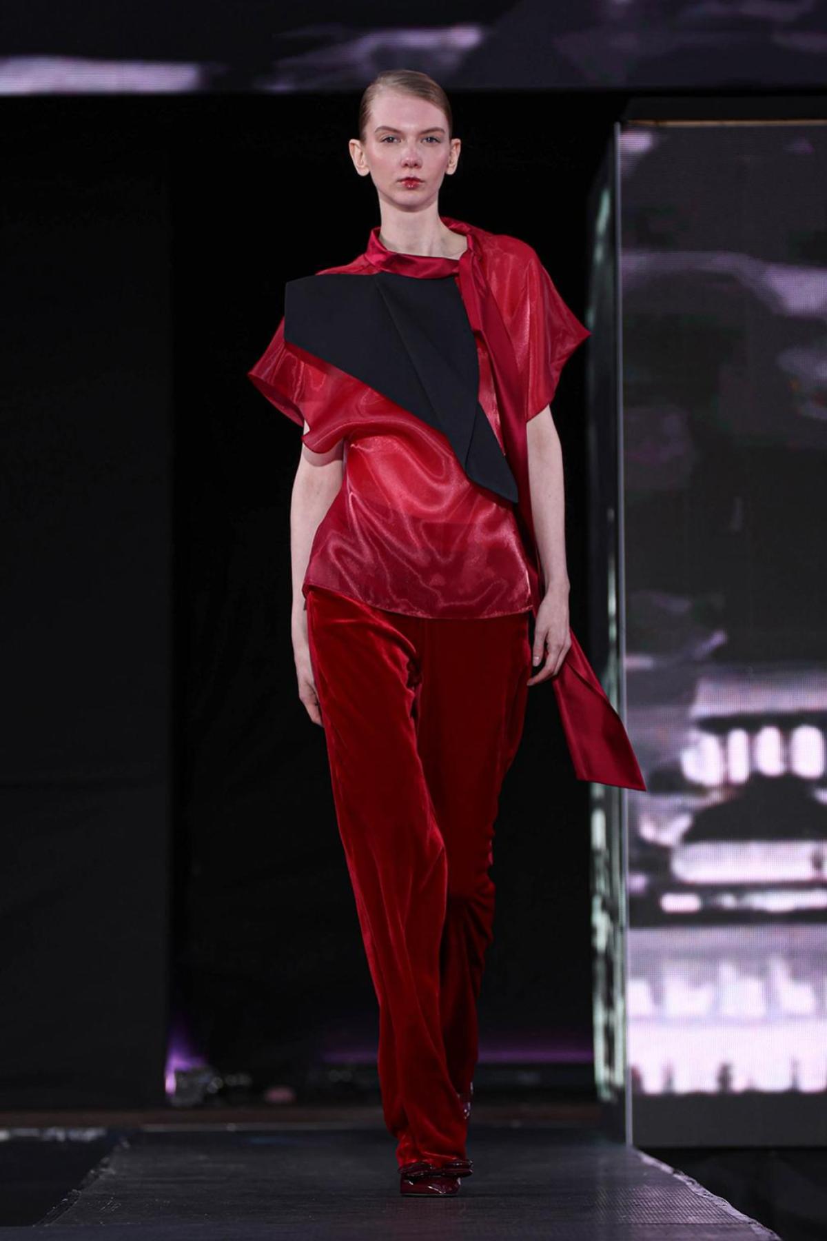 The Claremont blouse is an intriguing design featuring an abstract volume handcrafted from black satin silk, contrasted with the transparency of silk organza. The back reveals a subtle opening framed by a silk scarf.Upon request and with an additional fabric cost, it can also be made in a wider range of sizes than the standard.