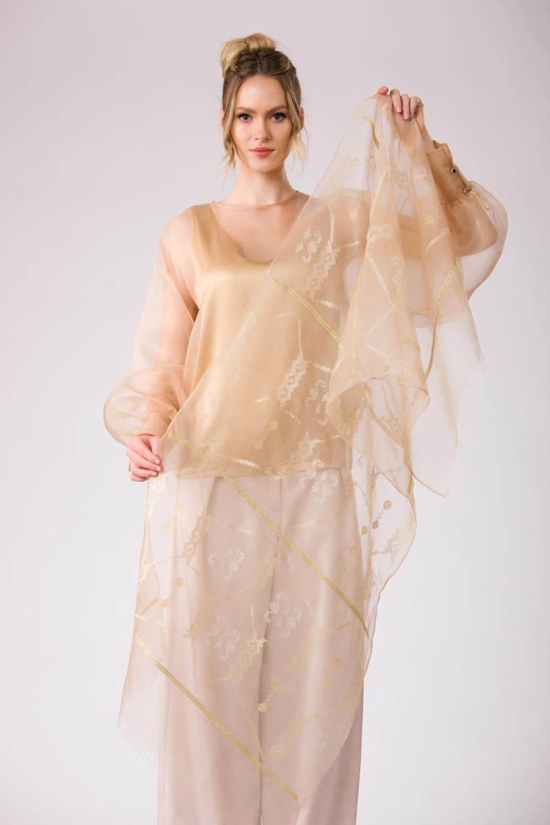 Fiecare eșarfă Andrea Tincu este ambalată în hârtie aurie de mătase și cutie luxury, personalizată cu numele brandului. După ce vă introduceți datele de livrare, puteți opta pentru felicitare cu mesaj scris manual de noi în alb sau personalizată cu inițialele dorite.