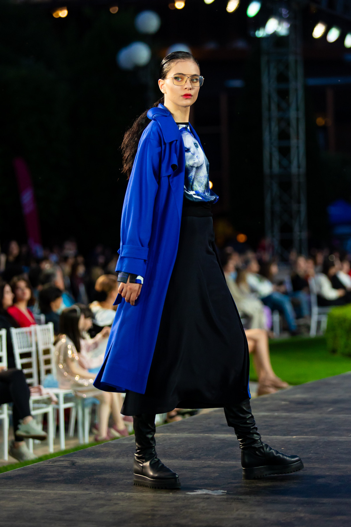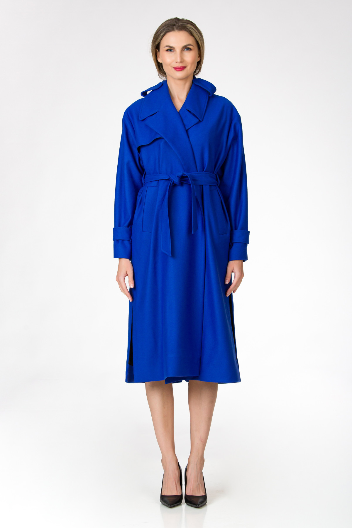 Paltonul Blue este o piesa complexa, cu un croi oversized, intr-o nuanta spectaculoasa de albastru, pe un tipar de trench reinterpretat. Stofa are calitate premium, dintr-un amestec de casmir si lana, ceea ce face pardesiul excelent pentru sezonul rece.