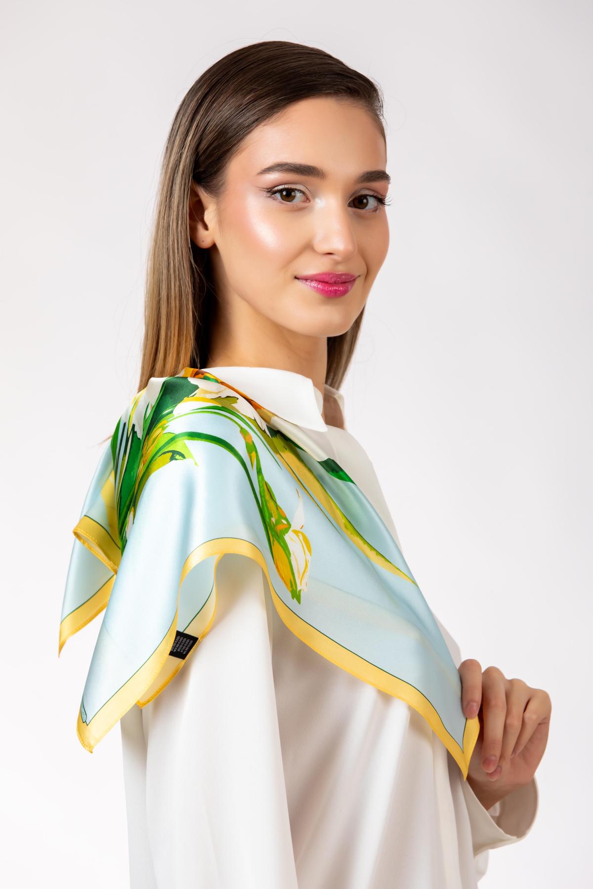 Esarfa de matase Iris Preziosa este alegerea ideala pentru femeile pasionate de arta si de rafinamentul clasic italian. Se armonizeaza perfect cu piese in nuante delicate, dar creeaza si combinatii cromatice de impact, precum lime cu violet sau galben solar, pentru un efect memorabil si sofisticat.
