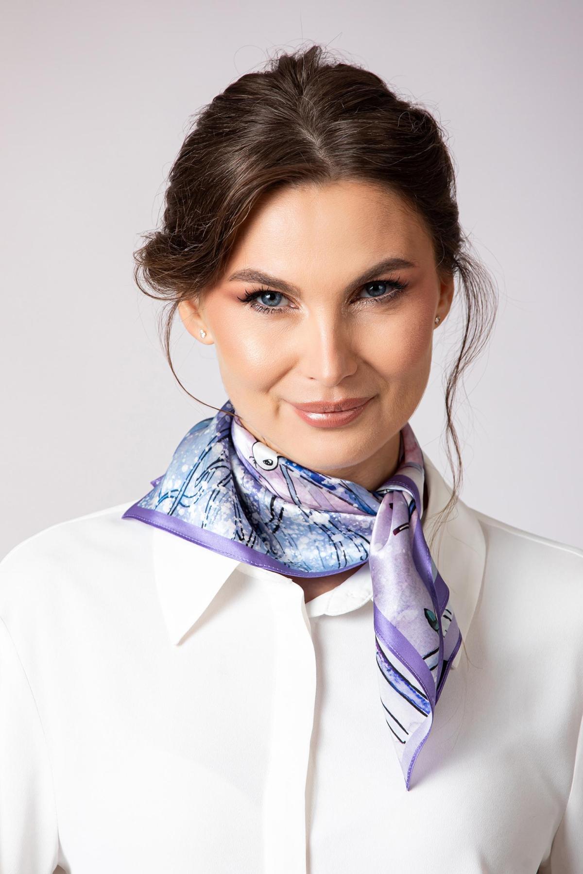 Esarfa de matase Snowy Friends cadoul ideal pentru femeile care iubesc iarna, ilustratiile si farmecul copilăriei.