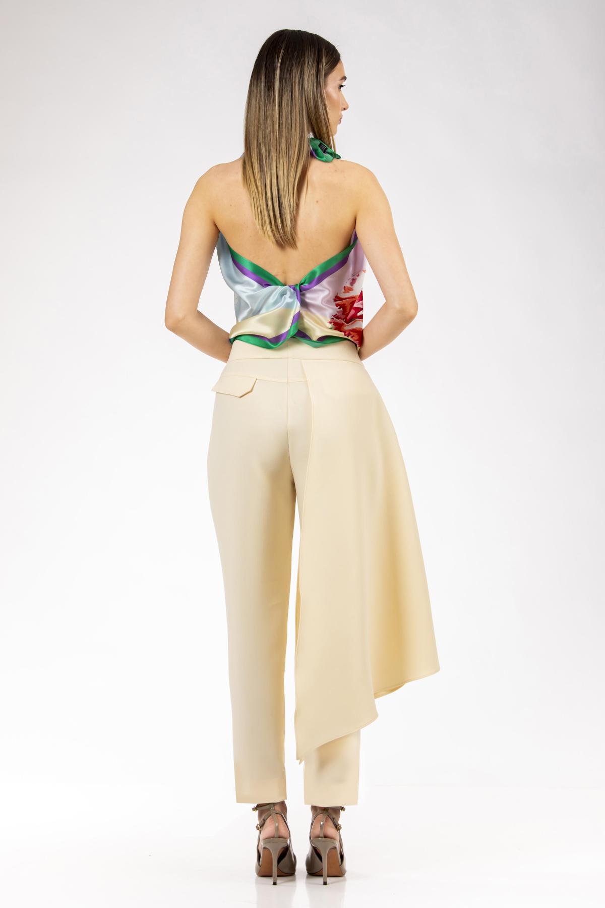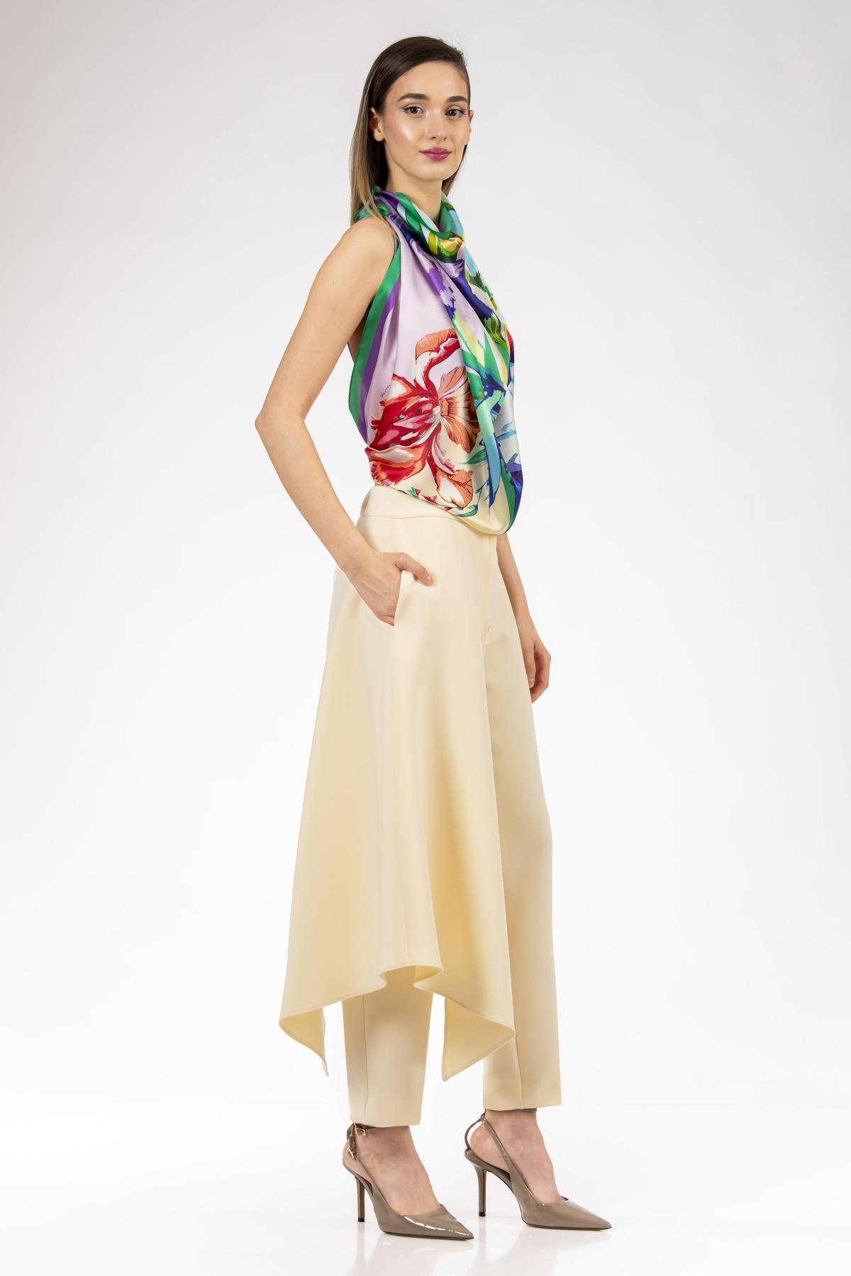 Pantalonii Firenze, intr-o nuanta luminoasa de ivory, imbina eleganta cu lejeritatea unei forme moderne. Reperul lateral cazut, inspirat de silueta unei fuste, adauga dinamism siluetei si reprezinta un detaliu neașteptat, pastrand totodata fluiditatea piesei. Croiul confortabila si tonul neutru fac din acesti pantaloni o alegere versatila, usor de integrat atat in tinute casual, cat si in combinatii mai sofisticate. La cerere, si cu extracost de material, pot fi realizati si intr-o gama de marimi mai mare decat cea standard.