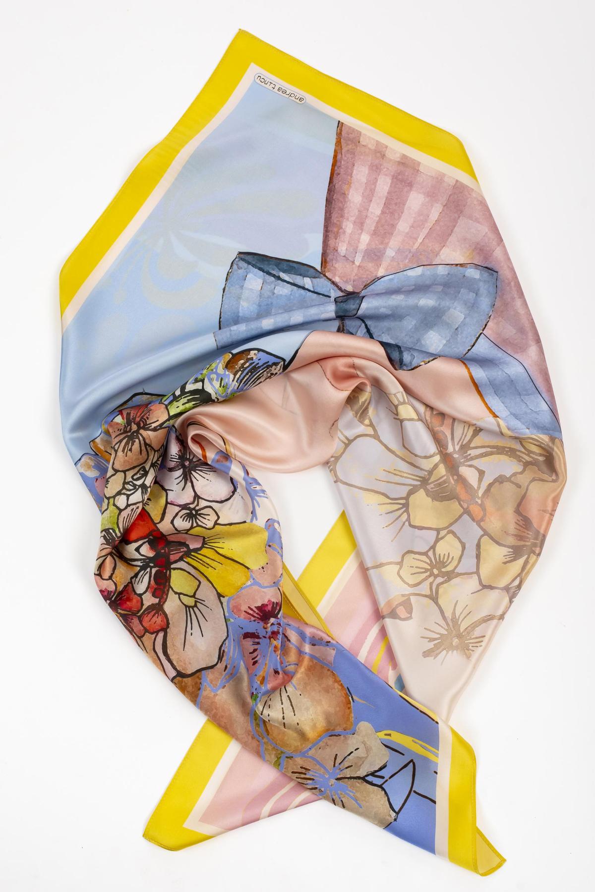 E un model inspirat de un print clasic Dior, pe care designerul l-a reinterpretat in stilul personal. Cromatica este delicata si eleganta, esarfa fiind potrivita femeilor romantice.