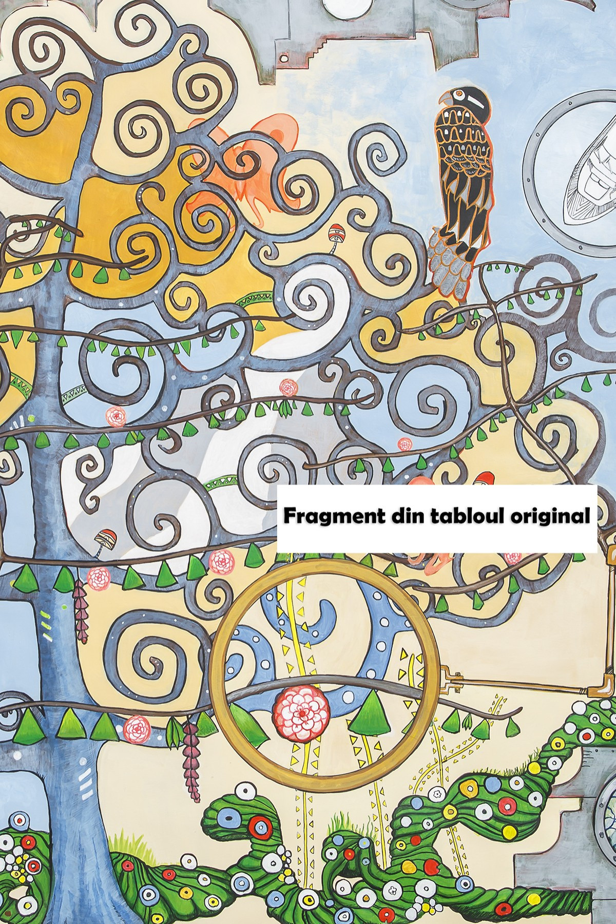Esarfa Hommage à Klimt este inspirata din arta pictorului Gustav Klimt. Grafica acestui model este extrem de complexa si a fost realizata initial pe panza, intr-o dimensiune mare, de 130/130 cm. Elementele decorative specifice picturilor lui Klimt sunt reinterpretate in viziunea designerului Andreea Tincu. Inspirata de celebrul tablou Tree of Life, aceasta creatie devine o adevarata explozie decorativa simbolica, unde ramurile spiralate ale vietii se impletesc intr-o armonie ornamentala ce sugereaza eternitatea, iubirea si legatura profunda dintre om si univers.